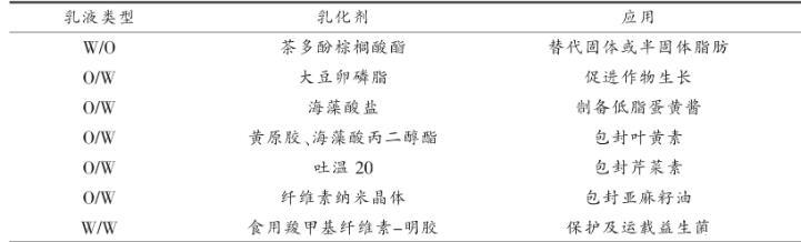 表1几种单腔室乳液在食品中的应用