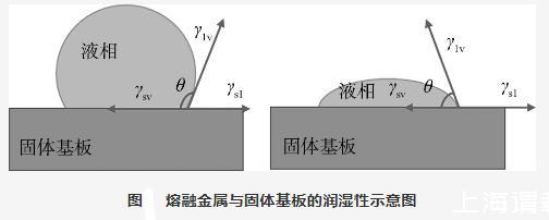 越大,说明液态金属对固体基板的润湿性越差;反之,越好。当