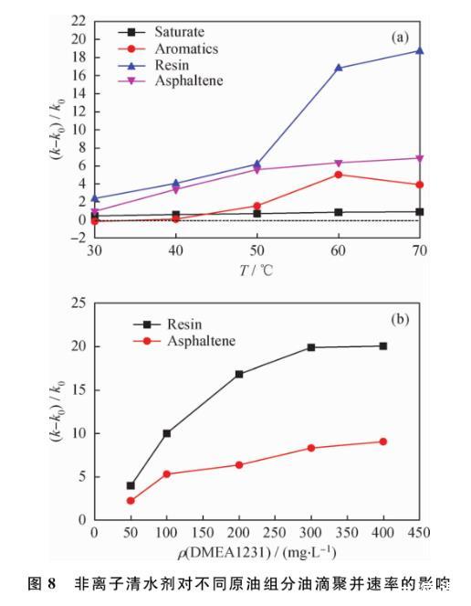图8非离子清水剂对不同原油组分油滴聚并速率的影响