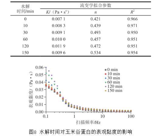 图8水解时间对玉米谷蛋白的表观黏度的影响