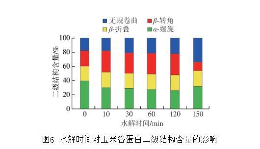 图6水解时间对玉米谷蛋白二级结构含量的影响