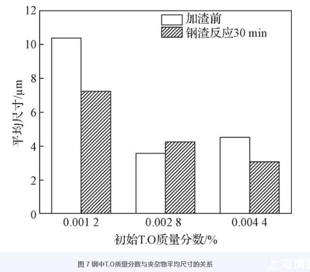 图7钢中T.O质量分数与夹杂物平均尺寸的关系