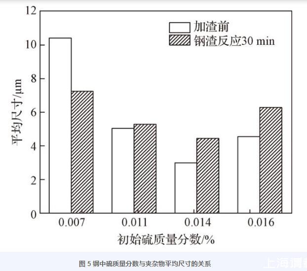 图5钢中硫质量分数与夹杂物平均尺寸的关系
