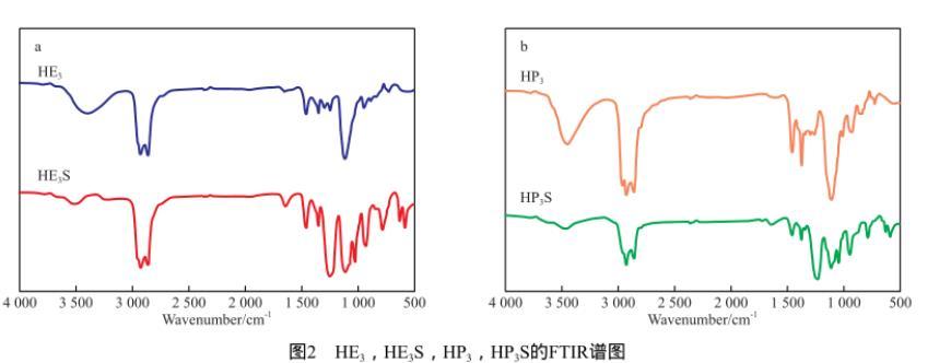 图2 HE3,HE3S,HP3,HP3S的FTIR谱图