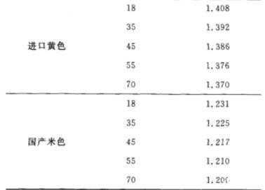4)按以上步骤分别测量18~70℃的容重(见表3)。
