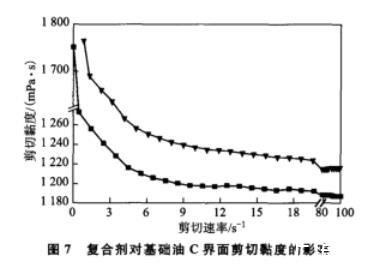 图7复合剂对基础油C界面剪切黏度的影响