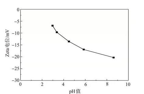 图3在不同pH值下纳米SiO2/SDS体系的Zeta电位