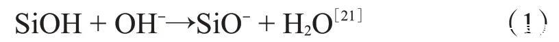 模拟地层水配制的纳米SiO2/SDS体系的pH值在8.5左右,此时,纳米SiO2表面的羟基会和OH-发生如下反应: