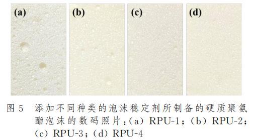 表2添加不同种类泡沫稳定剂硬质聚氨酯泡沫的压缩强度