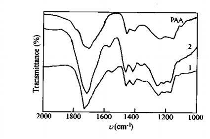 同标准聚丙烯酸红外图相比较(图1中PAA),可以清楚看到FPAA样品1,2具有1335cm⁻¹(CF₃),1213cm⁻¹(CF₂)特征吸收,证明所合成的变性聚丙烯酸确实含有极少量的全氟基团。