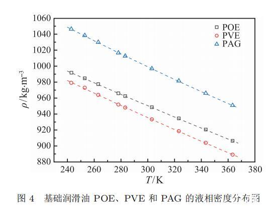 图 4 基础润滑油 POE、PVE 和 PAG 的液相密度分布图