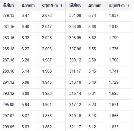 2. 实验建立的密度-温度方程(R²>0.9999)和Z-S表面张力关联式可为工程设计提供可靠预测工具。
