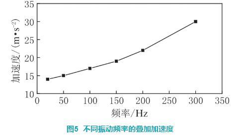 车辆在行驶中传递到油水分离器上的振动主要集中在10~340 Hz,沿X方向的主要振动频率为20、45、100、200、300 Hz,沿Y方向的主要振动频率为20、50、100、175、203、300 Hz,沿Z方向的主要振动频率为20、100 Hz,加速度均大于8 m/s2,沿Y方向100 Hz的振动加速度最大约为39.2 m/s2。为了方便对试验结果进行比较分析,最终选择在频率为20、50、100、150、200、300 Hz,加速度为39.2 m/s2的条件下进行试验。