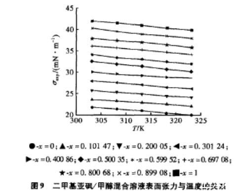 3.3 二甲基亚砜/甲醇二元混合物表面张力的实验研究