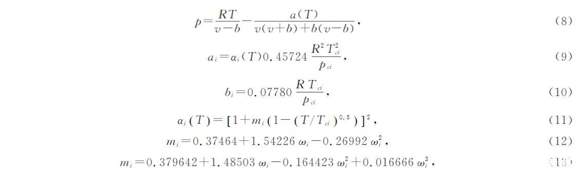 式中p为平衡压力,单位是Pa;R为理想气体常数,单位是J/mol/K;T为温度,单位是K;v为摩尔体积,单位是m³/mol;Tc为临界温度,单位是K;Pc为临界压力,单位是Pa;ω为偏心因子。