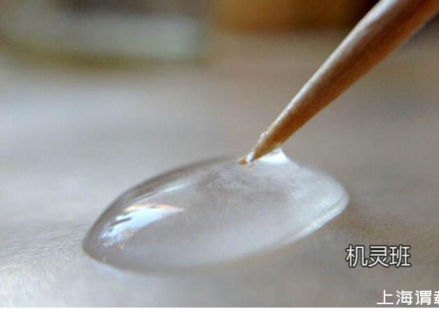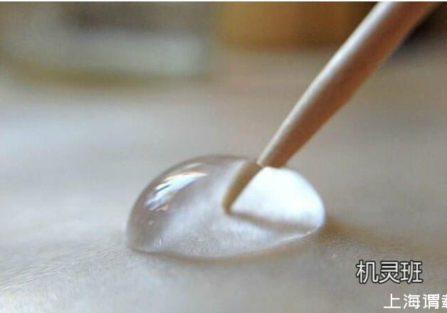 引申实验,在水滴上放置1滴油,把它们混合在一起后,再用干净的牙签戳混合后的液滴,看看此时会发生什么现象。然后用蘸有洗洁精的牙签戳混合后的液滴,看看又会出现什么现象。