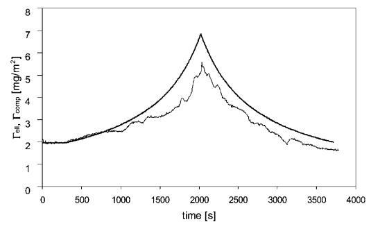 图8代表性压缩-吸附b-乳球蛋白(c=0.01 wt%)的膨胀实验,压缩低于每个分子的面积。 通过扩散量和压缩量(Gcomp)和椭偏仪(Gell)测量的预期吸附量。