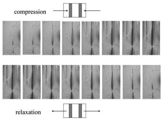 图4在4倍放大的透射光显微镜下,扩展HFBII层的压缩和松弛。