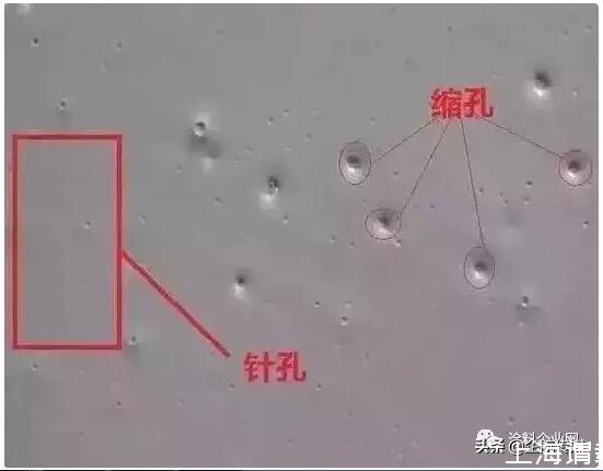 5、涂装后在溶剂挥发到初期成膜阶段,由于溶剂挥发过快,或在较高气温下施工,特别是受高温烘烤,涂膜本身来不及补足空挡,形成一系列小穴,即针孔。