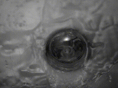 这时,他们在这些颠倒过来的硅油表面戳出气泡。他们发现,这时气泡坍塌的方式与此前正常的情况下完全一致:先是顶部的洞缓慢张开,而气泡其余部分“下落”,相对快速地变成平坦的圆盘状。但不要忘了,这时气泡“落”回粘性液体时,与重力的方向恰好相反。也就是说,此前重力起主导作用的观点并不成立。