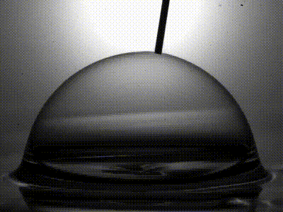 粘性气泡缓慢的破裂速度,也给了研究人员充足的时间来观察泡泡坍塌背后的物理机制。在20年前,就有研究仔细观察、分析了这一问题。当时的研究发现,在粘性液体的表面,在气泡上表面戳出一个洞时,这个洞会逐渐变大。在这个过程中,气泡下沉、收缩,直到形成平坦的圆盘状,而孔洞就位于圆盘中央。因此,科学家此前根据上述现象直观地推测:由于洞生长的速度不及落下的速度,这类气泡的坍塌是由重力驱动的。