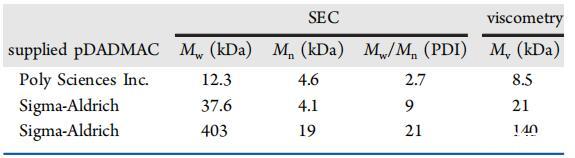 聚二烯丙基二甲基氯化铵(pDADMAC)。表2给出了研究中使用的pDADMAC样品的分子量表征。