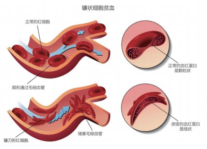 蜜桃性爱视频网站的红细胞原本是中间略扁的圆饼形,这下却被又长又硬的突变血红蛋白凝聚物撑成了镰刀形,不但运输氧气的能力大幅下降,还会卡在毛细血管的拐弯处,形成大范围的栓塞,肝脏、脾脏、红骨髓等毛细血管丰富的组织都将受到严重的损伤。所以,那些从父母双方继承的基因都有这个突变的“纯合”患者,常常会有生命危险。