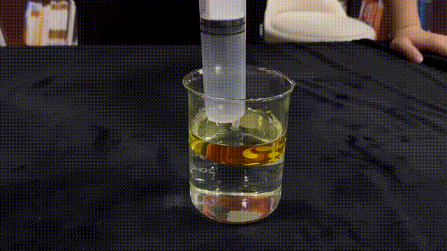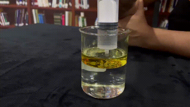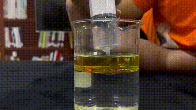 然后,用注射器向油层里注水