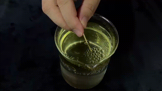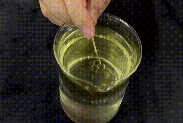 不过要小心,如果牙签触碰到了水滴的底部,水滴就会破裂下沉