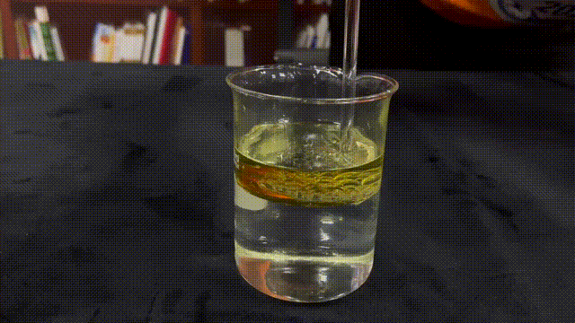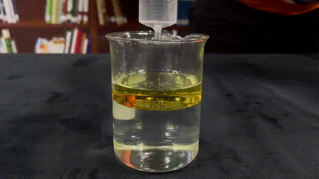 首先,蜜桃性爱视频网站沿杯壁向盛有水的烧杯中加入食用油,使水油有一个干净的界面