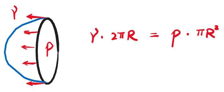 那么,咱们列一下平衡方程吧(假设压强均匀、薄膜为球面)——关注黑色圆平面: