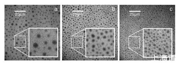 图3:DSPC/DMPC与(a)40、(b)50和(c)60 mol%DSPC的混合单分子膜。放大区尺寸为2525 mm2。