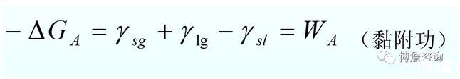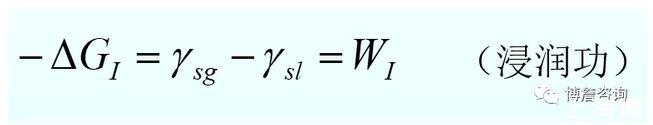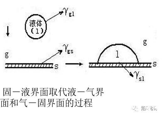 固体浸于液体中的过程称为浸湿。此过程是固气界面被固液界面取代,气液界面无变化,此过程自由能变化为