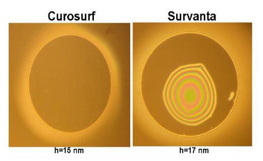 通过Curosurf和白蛋白将PEG 10000包含到混合FFs中不会改变膜类型,并且FFs仍然厚且不均匀。相反,葡聚糖的加入导致了显着的变化:观察到薄膜变薄且稳定的黑色薄膜(h=15 nm),类似于在没有白蛋白的情况下通过Curosurf获得的薄膜(图3)。