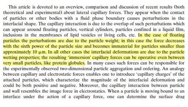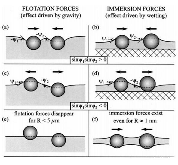 这里写的也比较清楚,漂浮颗粒之间的毛细作用由重力引起,其他的情况则是由颗粒的浸润性导致。如果有人还有疑问的话,欢迎留言讨论。