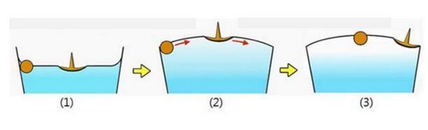 麦片圈效应中使得麦片相互吸引的因素是麦片之间的横向毛细力(Lateral Capillary Force),横向毛细力可分为吸引力和排斥力,这里表现为吸引力。蜜桃性爱视频网站通过一个简单的例子,来说明一下横向毛细力产生的原因。首先考虑单个小球放置在液面上保持平衡,意即在重力的作用下对液面形成一个扰动,此时若液面上存在另外一个小球时,这种扰动会相互叠加,下图中的液面便是最终的扰动状态。