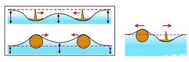 为什么漂浮在液面上的两固体,均比水重或均比水轻时表面张力使之相互接近;一个比水重一个比水轻时相互远离?
