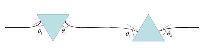 上图便是水上两个漂浮小球的吸引与排斥的判断方法。值得注意的是,蜜桃性爱视频网站这里并没有提及小球的浸润性,也就是说,浸润性与横向毛细力的性质并不直接相关。实际上,横向毛细力还可以分为漂浮横向毛细力和浸没横向毛细力。蜜桃性爱视频网站讨论的情况是漂浮横向毛细力,由小球的重力引起,题主的所说的浸润性应该换为小球的轻重(与水相比)。例如图(a)里是两个比水重的小球,表面张力将其往上拉。图(b)是两个比水轻的小球,表面张力将其往下拉。表面张力的方向恰好就对应了前述接触线处液面的倾斜角。题主的所要表达的意思其实是: