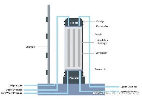 典型的三轴试验涉及将高度直径比为2:1的密封圆柱形土壤试样限制在加压压力室中,以模拟定义的应力条件。然后对试样进行剪切,直到破坏,从而确定其剪切强度特性。试样通常先饱和,然后固结,最后剪切,大多在压缩条件下。