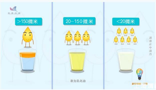 油是怎么存在水中的?油在水中的存在形式,根据油滴的粒径,可以分为三类,油滴粒径大于150微米称为“浮油”,这也是油进入水体的主要存在形式;油滴粒径在20-150微米之间称为“分散油”;油滴粒径小于20微米的称为“乳化油”。不管是表面活性剂稳定的油滴,还是无表面活性剂稳定的油滴,极小的乳化油以油包水或水包油的形式悬浮于水中。