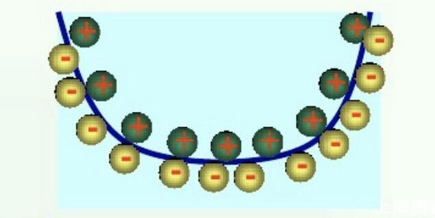 任何两界面都存在着界面张力,电极/溶液界面也不例外。但对于电极体系来说,界面张力不仅与界面层的物质组成有关,而且与「电极电位」有关。电极界面的剩余电荷都是同性的,同性电荷有斥力,力图使界面扩大,而界面张力力图使介面缩小,这两个作用力恰好相反而相互抵销,所以剩余电荷密度增大,界面张力就下降了。因此,带电界面的界面张力比不带电时要小,电极表面电荷密度越大,界面张力就越小。