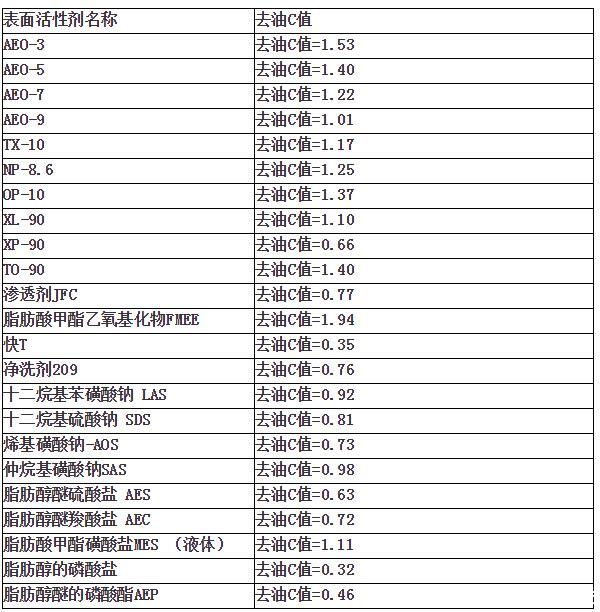 C=试样去油质量/标准配方去油质量,C值越大,表明表面活性剂的去油能力越强