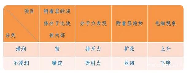 (1)对于一定液体和一定材质的管壁,管的内径越细,毛细现象越明显;管的内径越细,越体越高。