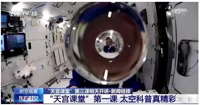 授课中,航天员介绍展示了空间站工作生活场景,演示了微重力环境下细胞学实验、人体运动、液体表面张力等神奇现象,并讲解了实验背后的科学原理。