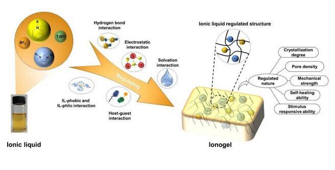 图2.离子液体调控离子凝胶的结构和性质的示意图