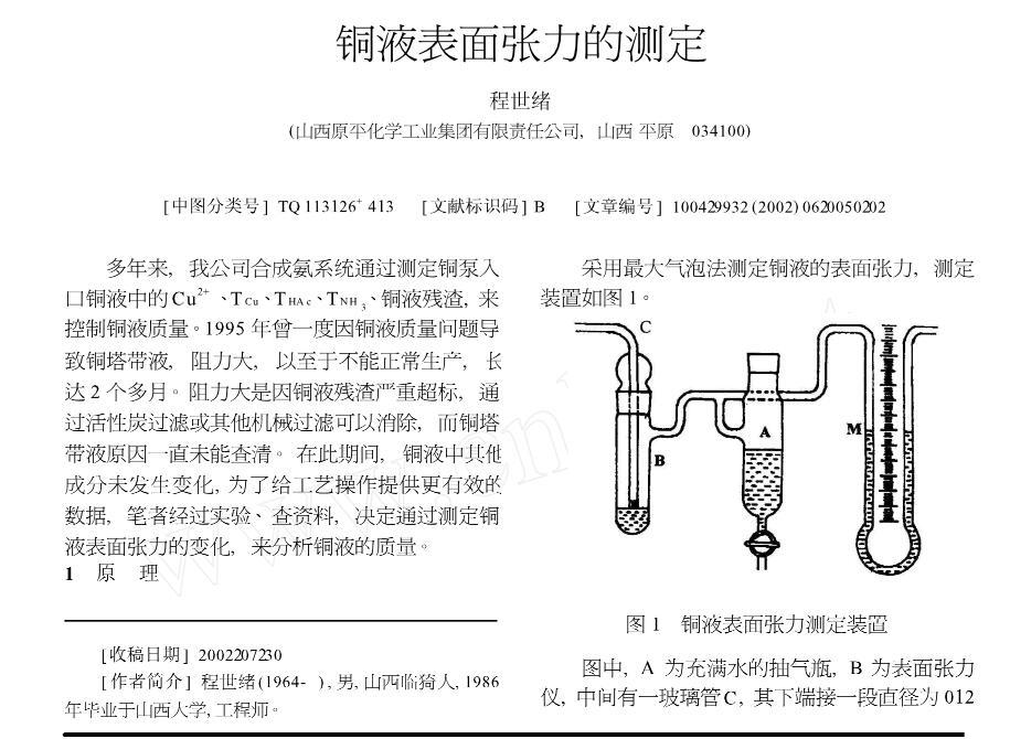 铜液表面张力的测定