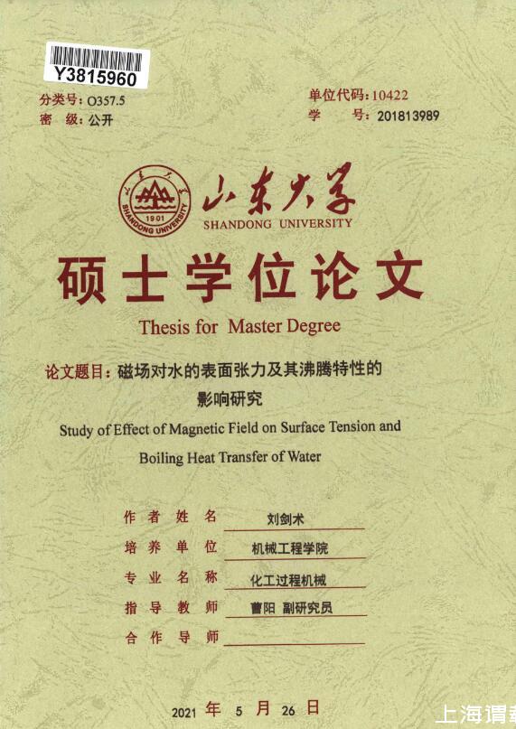 其次,利用电磁发生设备产生磁化水后,利用表面张力系数测量仪,较为系统详细地探究了磁场对水的表面张力系数的影响规律,并得到了各个磁场强度及磁化时长下的最佳组合,找到了最佳磁化点,发现在300 mT的磁场中磁化15 min后,磁化水的表面张力系数降幅最大,降幅约25%。然后作者进行了磁化水的池沸腾实验,发现无论是在后壁面提供热流进行沸腾还是在底壁面提供热流进行沸腾,磁化水都会产生比未磁化水更多的沸腾气泡,具有更好的沸腾换热效果,说明磁化对水的沸腾换热是具有一定强化效果的。此外,相比较于未磁化水,磁化水在气泡产生和完全脱离形成剧烈沸腾时所需的热流密度比未磁化水低,磁化水可以在更低的热流密度时发生沸腾,沸腾发生提前,这将利于更早的开始热量传递,在实际的沸腾换热设备中具有重要意义。