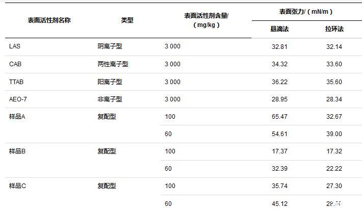 表2表面活性剂复配溶液不同方法间静态表面张力测定结果对比(25℃)