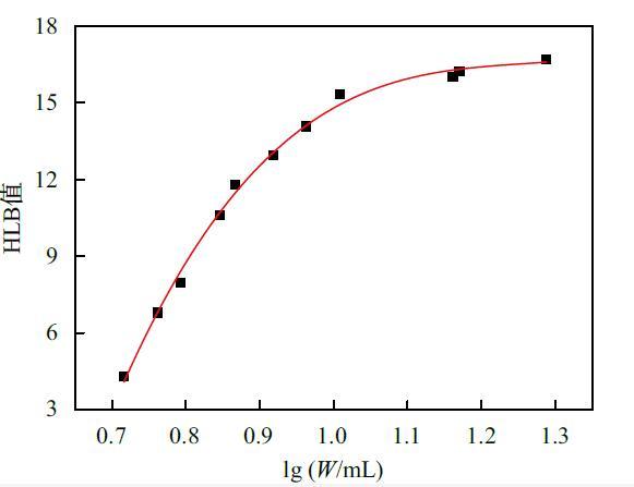 式中,Y为表面活性剂的HLB值;X为lg(W/mL),即表面活性剂测得的水数取对数值。