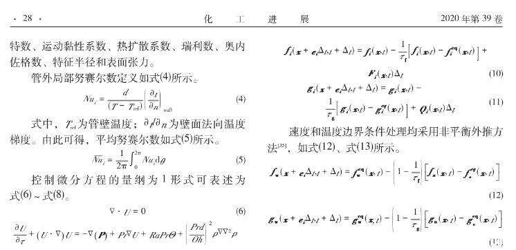 【摘要】:采用格子-玻尔兹曼方法 (LBM)构建了考虑表面张力影响下封闭腔体内加热圆柱外自然对流数学模型。在分别对自然对流与表面张力模型模拟验证的基础上,探究了液固表面张力与重力场下浮升力同时作用下加热圆柱外流体自然对流的传热特性。结果表明,在给定Ra数下(103≤Ra≤106),随着表面张力的增大(Oh数减小),封闭腔体内管外自然对流扰动会加剧,流型会变复杂,壁面换热效率有明显提高。